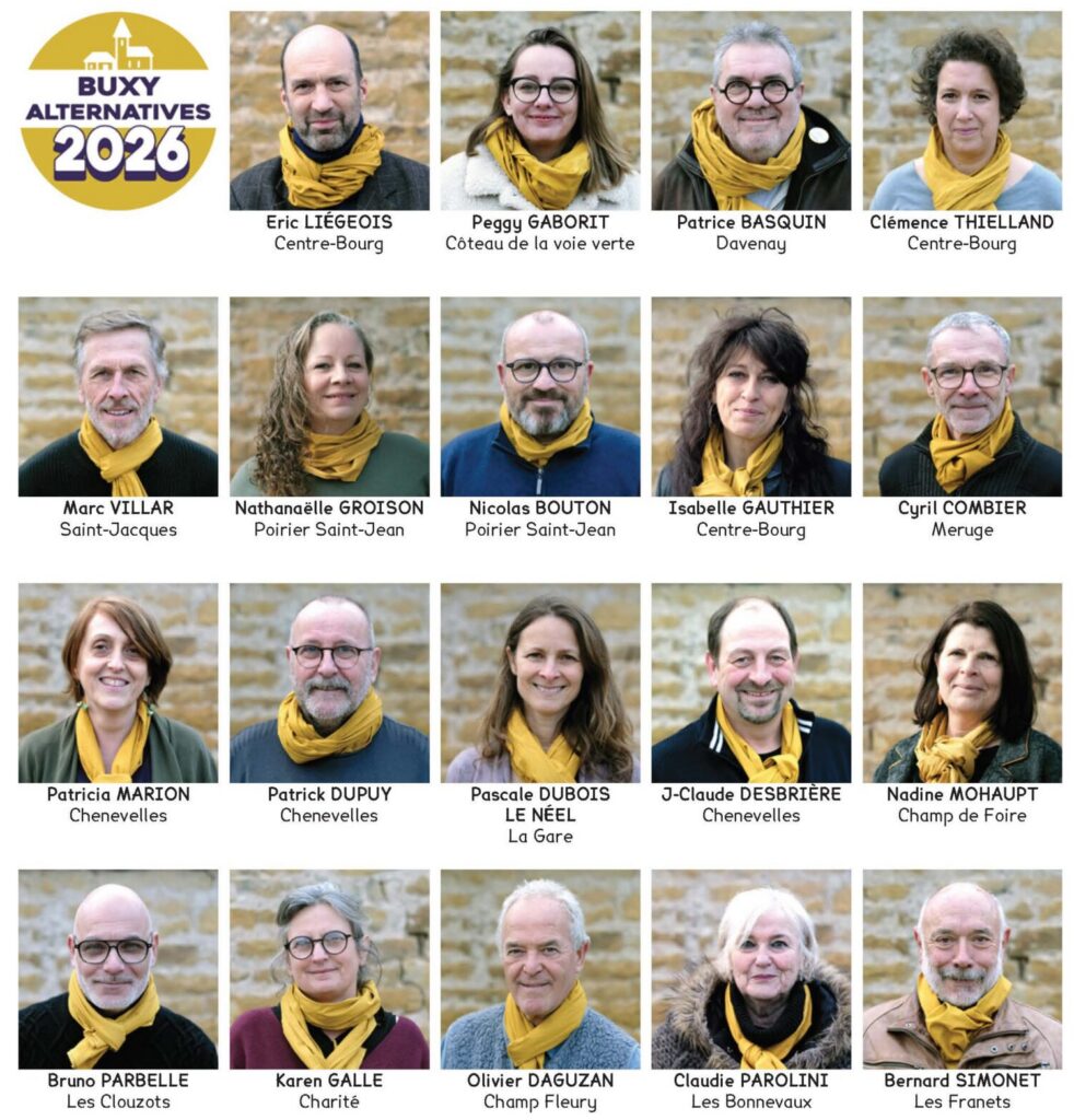 Si je choisis aujourd’hui de me présenter au scrutin municipal avec Buxy Alternatives c’est parce que j’ai confiance dans ce collectif que j’ai rejoint peu après notre installation. Je pense que les Buxynois méritent un projet de vie ambitieux, respectueux de l’histoire de Buxy et tourné vers son avenir. C’est avec Buxy Alternatives que j’ai trouvé l’énergie et la vision nécessaires pour réaliser ce projet.
